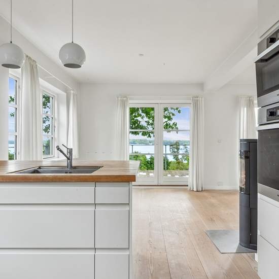 Denne pæne og gennemgribende istandsatte villa (2007) byder på en af de mest spektakulære udsigter i området – direkte over Esrum Sø med Fredensborg Slot som en markant silhuet i horisonten. Boligen ligger i naturskønne omgivelser og fremstår indflytningsklar og nymalet ved overtagelse. Huset fordeler sig over flere niveauer og rummer i stueplan en indbydende entré med skabe, et stort værelse/ekstra stue med udgang til den hyggelige forhave, samt en lys og rummelig opholdsstue i åben forbindelse med et moderne, grebsløst køkken med alle hår...