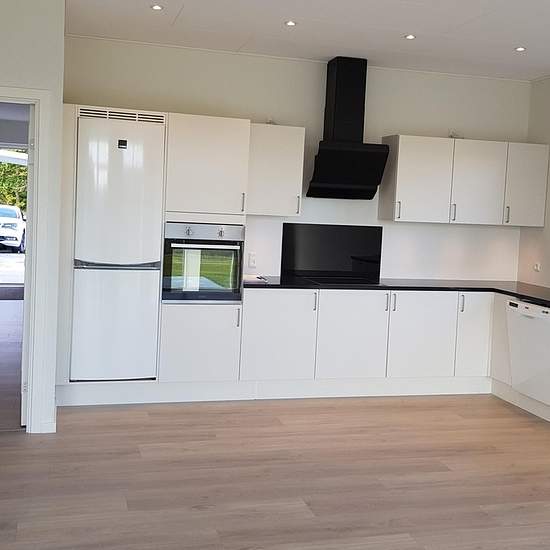 Rækkehuset indeholder hvidt HTH køkken med sort granitbordplade. Der er monteret køle/fryseskab, ovn, keramisk kogeplader, samt opvaskemaskine. Der er lyse trægulve i stue og værelser, med gulvvarme overalt. På badeværelse er der lyse fliser, samt gulvvarme. Der er afsat plads til vaskemaskine mm. Kæledyr er tilladt efter aftale. Huset er fantastisk placeret direkte til å og skov, 3 km til motorvejen, 500 meter til badesø, ca. 5 km til Herning torv, og 2 km til handelslivet i Lind, hvor der også er både skole og børnehave, samt idrætfacilite...