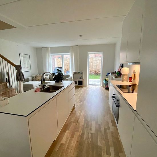 Rækkehus m have & tagterrasse (3 etager) Flot rækkehus i tre etager og med stue/køkkenalrum, fire værelser, to badeværelser samt have, gårdhave og ikke mindst tagterrasse på øverste etage. Rækkehuset har en central placering i Hillerød tæt på både indkøb og institutioner. Rækkehuset indeholder: - rummelig entré - to badeværelser, et på hver etage, inkl. vaskesøjle - fire værelser - stue/køkken/alrum i stueetagen med direkte udgang til hhv. gårdhave og have med fliseterrasse og græs - tagterrasse på øverste etage - køkkenet i sort/hvid er ele...