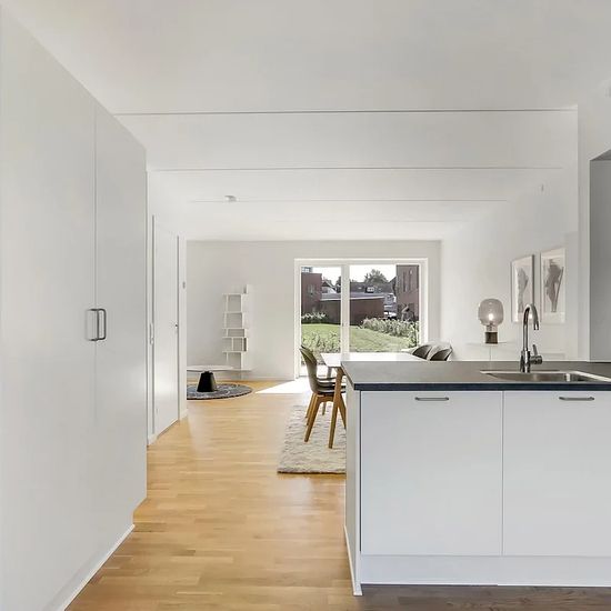 Rækkehuset er fordelt på to plan med lyse, åbne opholdsrum i stueplan, hvor køkken, spiseplads og stue flyder naturligt sammen – ideelt til både hverdagsliv og weekendhygge. Førstesalen rummer soveværelse og ekstra rum med plads til børneværelse, gæster eller kontor. Til boligen hører en lille forhave og en privat baghave med udsigt til grønne fællesarealer – perfekte til leg, afslapning og hyggelige stunder udendørs. Hele området byder på sammenhængende stier og varieret beplantning, som skaber en naturlig og hyggelig ramme om boligen.