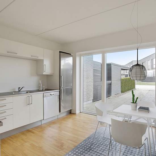 5-værelses Rækkehus på 133 m² i Aalborg SØ Helenavej 17, 9210 Aalborg SØ Helena Park - Lejemålsnr. 9-632-15 Velkommen til Helena Park Denne ejendom består af 24 rækkehuse, som er opført i 2008. Rækkehusene fordeler sig på fire til fem værelser på 135-138 kvm både i et- og to plan. Ejendommen har nem adgang til indkøb, skole, daginstitutioner og fritidsaktiviteter. Rækkehusene er opført i nordsk stil med lækre og lyse materialer. Derudover har ejendommen en fælles legeplads. I dette 5-værelses rækkehus får du: Stor stue med udgang til egen f...