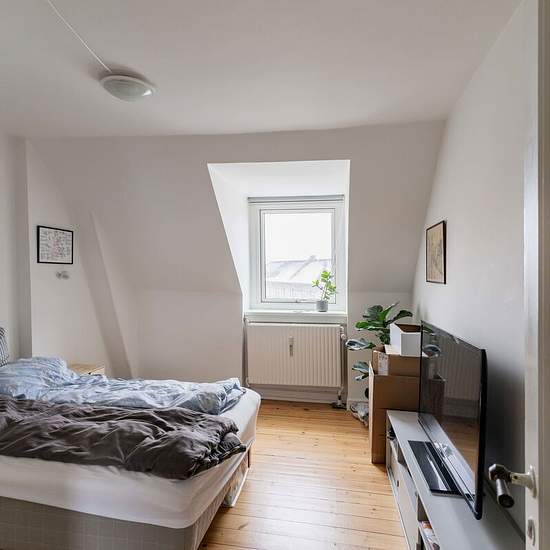 Lys lejlighed på 4. sal i attraktiv ejendom på Halls Allé. Boligen er på 107 m² og er indrettet med 3 veludnyttede værelser. Skråvæggene giver lejligheden karakter og bidrager til en hyggelig atmosfære, samtidig med at de relativt store vinduer sikrer et godt naturligt lysindfald. Planløsningen byder på en rummelig stue med plads til både ophold og spiseområde samt to gode værelser med fleksible indretningsmuligheder – velegnet til par, den lille familie eller singlen med behov for ekstra plads. Køkkenet er funktionelt og lyst med både opva...