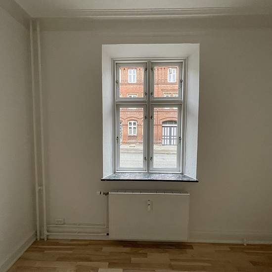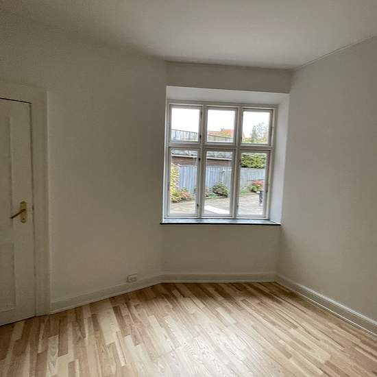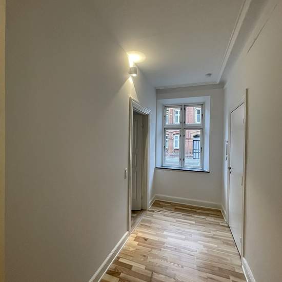 Herskabelig og lys lejlighed udlejes i høj stue etage. Lejligheden er total istandsat i 2025 med nyt køkken samt badeværelse mv. Der er 3 værelser og 2 store stuer samt mindre viktualierum. Desuden medfølger kælderrum og adgang til hyggelig gårdhave med cykelskur. Kontakt for fremvisning