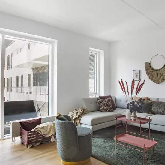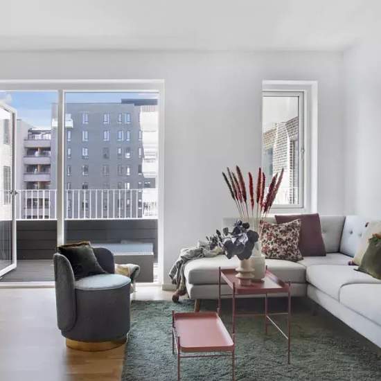 Lejligheden Lejligheden er indrettet med et stort alrum, hvor køkken og stue smelter sammen og skaber en rummelig atmosfære. De store vinduespartier trækker lys ind i lejligheden fra alle vinkler. Dertil er boligen udstyret med et moderne køkken fra Invita, hårde hvidevarer fra Bosch Siemens samt praktisk skabsplads i mastersoveværelset. Fra gangen har du adgang til det rummelige og indbydende badeværelse med gulvvarme, formstøbt marmorvask, væghængt toilet samt vaskesøjle. Fra stuen har du udgang til en stor møblérbar altan, der giver et pr...