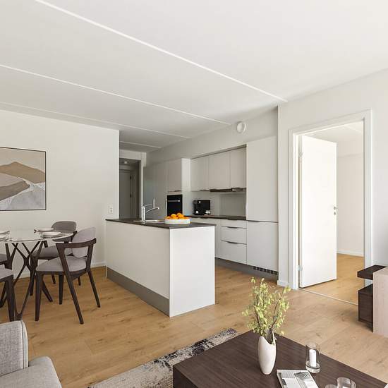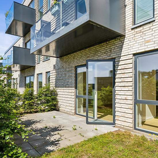 Lys og moderne 5 vær. lejlighed med direkte adgang til terrasse. Lejligheden byder på god entré som fører videre til rummelig stue i åbent forbindelse til lækkert køkken med køkkenø. Fra stuen er der direkte adgang til skøn terrasse. 4 godeværelser faste skabe. Slutteligt godt badeværelse med vaskefaciliteter. Lejligheden er beliggende tæt på indkøb, fritidsaktiviteter, dagindstitutioner, skoler og en pragtfuld natur. Efter en kort cykeltur kan man ligeledes nå badebroen ved Kolding Fjord. *Plantegning er vejledende og uden ansvar *Foto er i...
