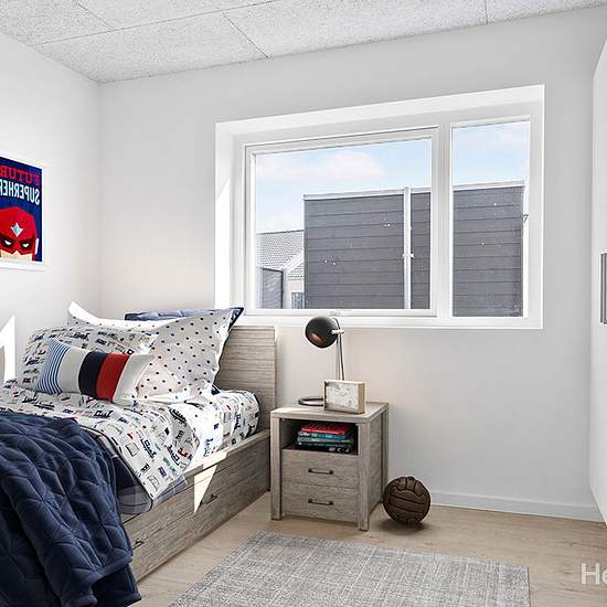 5-værelses Rækkehus på 125 m² i Randers SØ Haflingervej 22, 8960 Randers SØ Haflingervej II - Lejemålsnr. 9-609-11 I Assentoft ved Randers finder man Haflingervej som består af 59 rækkehuse, fra 2 til 5 værelses boliger. Boligerne er opført i 2019 og har energimærker A2015. Rækkehusene er opført i nordisk stil med lækre og lyse materialer, alle boligerne har godt lysinfald, de har højt til loftet og åben til kip i opholdsrummet. Derudover har ejendommen en fælles legeplads. I dette fem værelses rækkehus får du: Entré og bryggers med vaskemas...