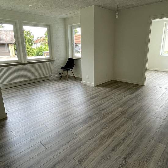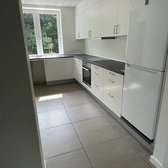 Lækker og moderne 5 værelses lejlighed, bestående af soveværelse med skabe, 3 værelser, stue med karnap, fordelergang, badeværelse med plads til vaskemaskine og tørretumbler, køkken med spiseplads, viktualierum/spisekammer og entre Trappe til indgang med 7 trappetrin Parkering I gården og fælles have. Der er 2 lejemål i ejendommen, som er fælles om at holde udearealerne Opvarmning: varmepumpe luft/vand Husleje er uden forbrug Lejligheden har for nyligt gennemgået en totalrenovering, så alt er nyt og energivenligt. Egner sig til familie ...