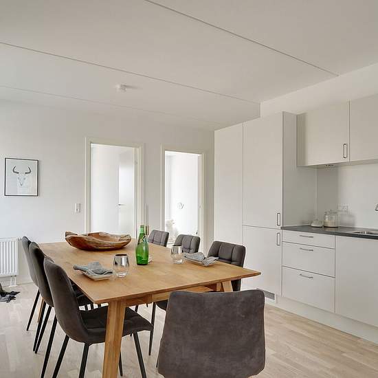 Lejlighederne varierer i størrelse fra 1 til 5 værelser fordelt på mellem 43 og 111 kvm. Alle lejemål har en entré, et stort køkken-alrum med åben forbindelse til stue, et badeværelse og et eller flere separate værelser. Alle lejligheder har egen altan eller terrasse. Hårde hvidevarer Der er alt i hårde hvidevarer inklusive kombineret vaskemaskine og tørretumbler samt opvaskemaskine. Husdyr Lejere kan ansøge om tilladelse til at holde én indekat på adressen. Udekatte og hund er ikke tilladt. Se vores samlede husdyrsregler her. Parkering ...