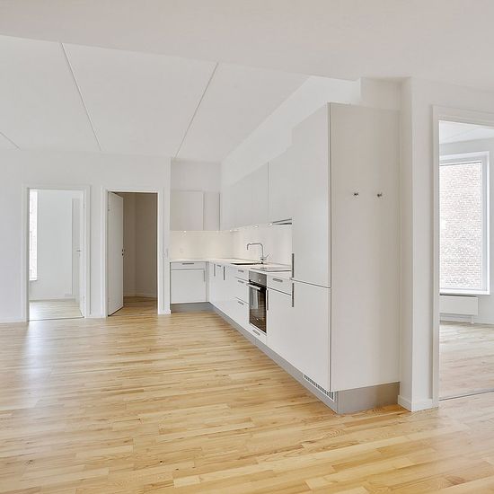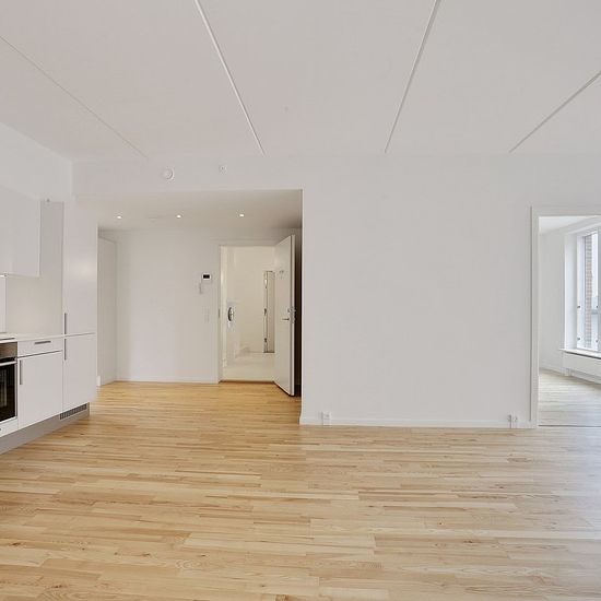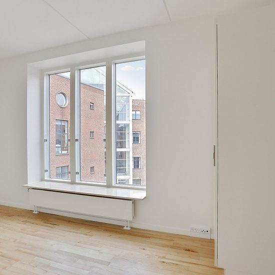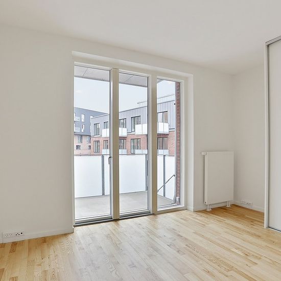 Udlejer: DEAS Mægler Mail: EMAIL Tlf. nr.: Lejlighederne er usædvanligt højloftede og med store vinduespartier, der gør, at lyset strømmer ind fra alle vinkler, det får boligerne til at fremstå lyse og venlige. I køkkenet er der støjsvage hårde hvidevarer med fuldt integrerede fronter, på badeværelset er der vaskesøjle og stor bruseniche. Alle lejligheder har garderobeskabe og depotrum. Til de fleste lejligheder er der altan eller terrasse. Byggeriet er i lavenergiklasse og har fået tildelt det grønne energimærke A 2015. I ejendommen findes...