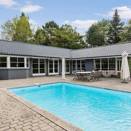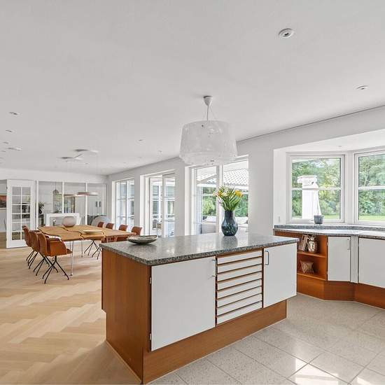 Rarely offered villa with pool at one of Vedbæk’s best addresses. The single-level home is distributed over 282 square meters of living space as well as a double garage and pool house. In addition, there is a parents’ section with a large bedroom, walk-in closet and bathroom with spa. Impressive west-facing living room with fireplace connecting the dining room and kitchen. In addition, there are 3 good bedrooms, 2 bathrooms, utility room and 2 storage rooms. The house has a beautiful garden, gate/driveway, pool and pool house with bathroom. ...