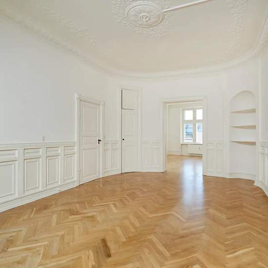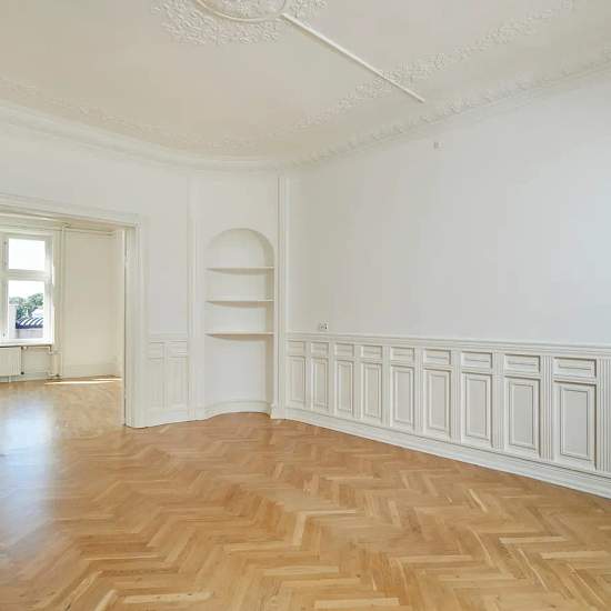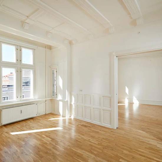 Denne imponerende ejendom fra 1902 fremstår smukt vedligeholdt og er løbende renoveret med respekt for dens klassiske arkitektur. Ejendommen tilbyder adgang til en stor, aflåst og grøn fælles gårdhave – et fredeligt og privat åndehul midt i byen, hvor beboerne kan nyde roen væk fra gadelivet. Lejligheden er en sjælden perle med herskabelige detaljer og en indretning, der emmer af elegance og komfort. Lejligheden indeholder: Dejlig lyse stuer med store vinduer, høje paneler og smukke stuk lofter. Stuerne har udsigt til Østerbrogade og Østerb...