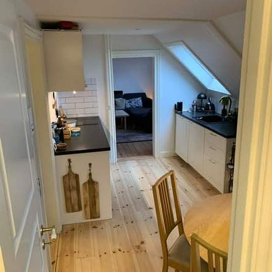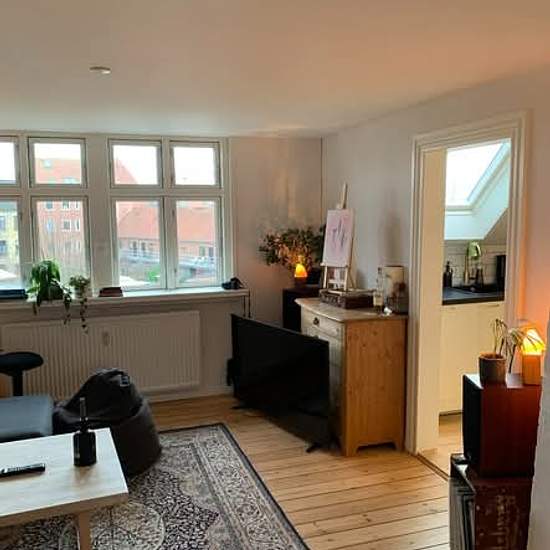 Roomie søges! Værelse udlejes på Danmarksgade. 8 kvm værelse i en 73 kvm varm og hyggelig lejlighed på 2. sal. Masser af naturligt lys, nyrenoveret køkken og indrettet med planter og møbler. Hyggelig stue med udsigt over byen, sofa og smart TV. Gratis vask til fri afbenyttelse i kælderen. Åbent moderne køkken med to køleskabe gør deling er nemt. Fryser, airfryer og mikroovn. Simpelt badeværelse med god bruser og rummelig brusekabine. Jeg er studerende, værdsætter stille og rolig atmosfære, hygge, klare rammer, samt ren- og ryddelighed ...