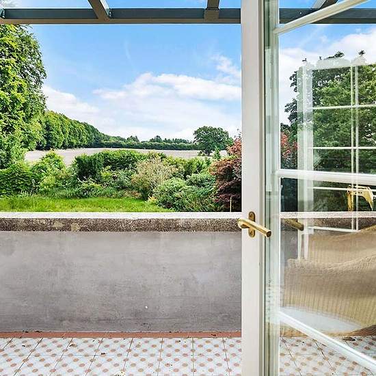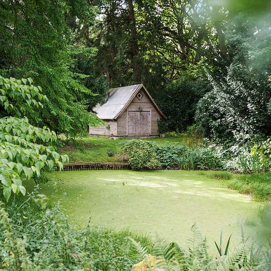 Tilbagetrukket fra vejen, ja, grusindkørslen bugter sig over 120 m op mod hovedhuset og sideboligen, der er bygget som en ganske særegen lade. Helt hemmeligt ligger ejendommen. Beskyttet mod indkig og støj af de store gamle træer. Mod øst, naturligvis foran de vigtigste stuer og stenterrassen i husets fulde bredde, åbnes der op for en vidtstrakt udsigt over de mere end 3 tønder land, 17.000 m2, med marker, fri natur og skov. Skovrideren, den oprindelige bygherre og ejer, gjorde en rejse til Sønderjylland i forbindelse med Genforeningen i 192...