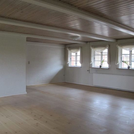 Skøn landejendom med masser af plads og klassisk charme fra 1848. Stort køkken med spiseplads og direkte adgang til en parklignende have. Boligen har hele 6 gode soveværelser. To rummelige stuer. Den ene med flotte, høje malede paneler. To badeværelser med brus, samt stort og praktisk bryggers med god opbevaringsplads. Til ejendommen hører 2 garager. En bolig med ro, plads og landlig idyl. I huslejen er inkluderet delafregning for opvarmning – nærmere forklaring gives.