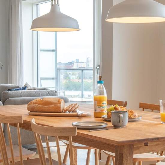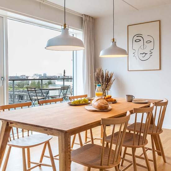 Description - space This beautiful and modern apartment is always full of light and consists of four single rooms. There are 2 spacious and beautiful bathrooms and a large open kitchen with a lounge area overlooking the Copenhagen skyline. Description - area If you ever wanted to live on city island, with views to a ski slope, now you can. You live in the historical, green area Margretheholm, which used to be the home of the naval air station in 1915. Vandkunsten Architects designed this elegant top floor apartment. Wake up with the sun risi...