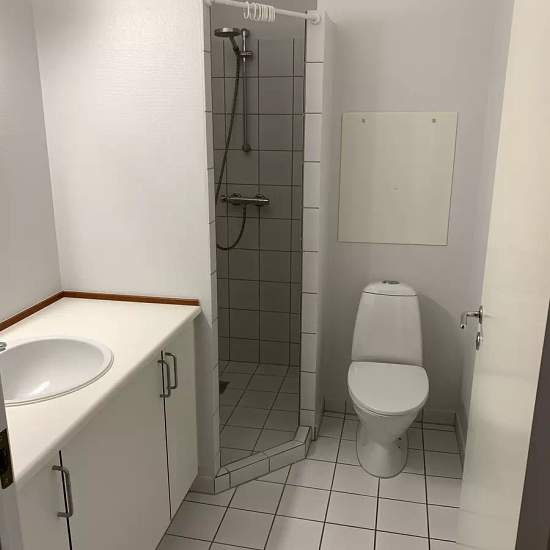 Lækker lejlighed med laminat gulve og hvid glatte døre, mange skabe. Ejendommen har elevator, porttelefon og 8 dele altaner. 1 stk. p-plads medfølger. HTH Køkken med Opvaskemaskine, komfur, emhætte og køle-fryseskab. Badeværelse med klinker og gulvvarme. Lejligheden er nymalet og rengjort ved indflytning. INGEN DYR eller rygning. cykelrum, depotrum og fælles vaskeri i kælderen. Fordeling a'conto: varme 600,- + vand 200,- Lejligheden ligger 450 meter fra gågaden og meget tæt på indkøb.