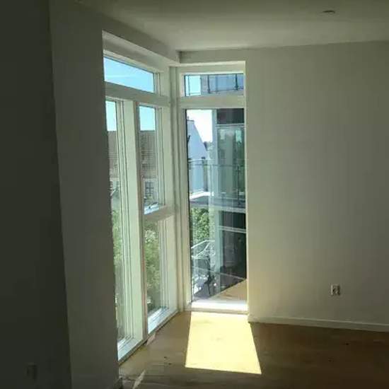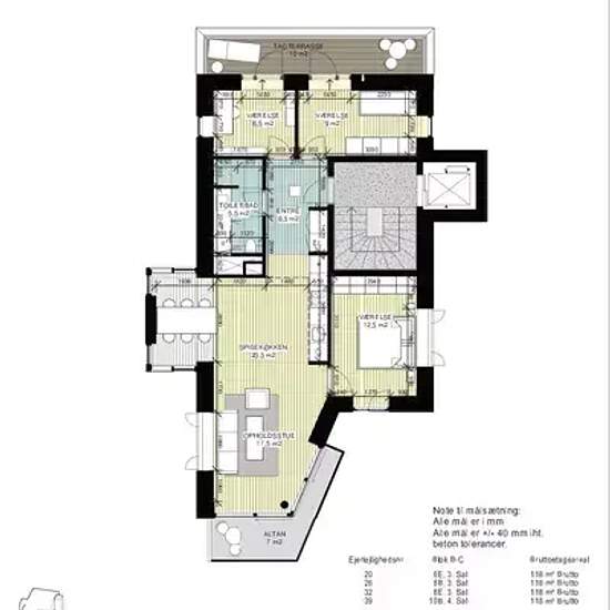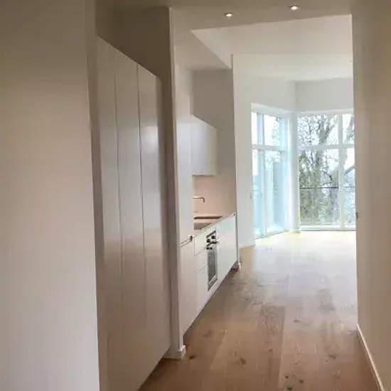 Luksus byggeri tegnet af Grønning Arkitekter - Alt er valgt med nøje omhu: Uno Form Avantgarde køkken, hvidevarer fra Kitchen Aid, armaturer fra Dornbracht, plankegulve, gulvvarme, badeværelse med 30 x 60cm fliser. Indeholder: Entre, veldisponeret badeværelse, 2 gode værelser, soveværelse, stue med spiseafdeling og rigtig godt lysindfald, udgang til lækker terrasse. Bygningen har elevator og der er kælderrum og p-plads til alle boliger. Billederne er ikke fra den aktuelle bolig men fra tilsvarende