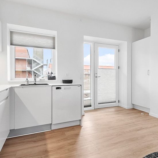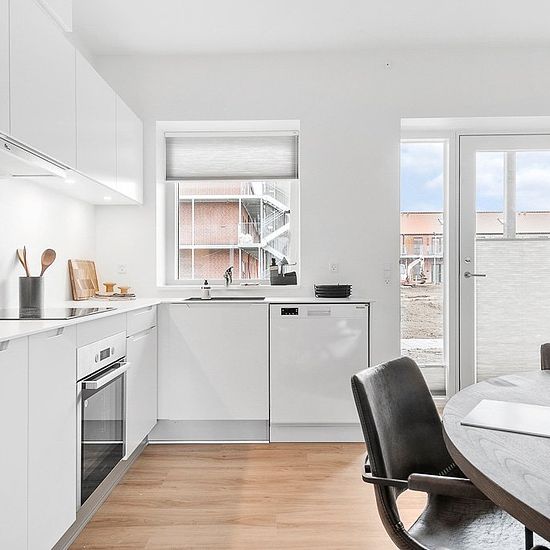 Kasernebyen er den nye grønne bydel i Ringsted. Her er der i løbet af 2021-2023 opført 210 attraktive lejeboliger, der både størrelses- og indretningsmæssigt er målrettet såvel seniorers som børnefamiliers behov. Lejlighederne er i varierende størrelse fra 54 – 120 kvm. Der er henholdsvis privat terrasse, altan eller fransk altan til alle lejlighederne, og desuden er der etableret elevator ved 3 etagers boligerne. Boligerne har gulvvarme i alle rum. Badeværelserne har keramiske klinker og sanitet, der matcher tidens krav. Det samme har køkk...