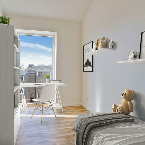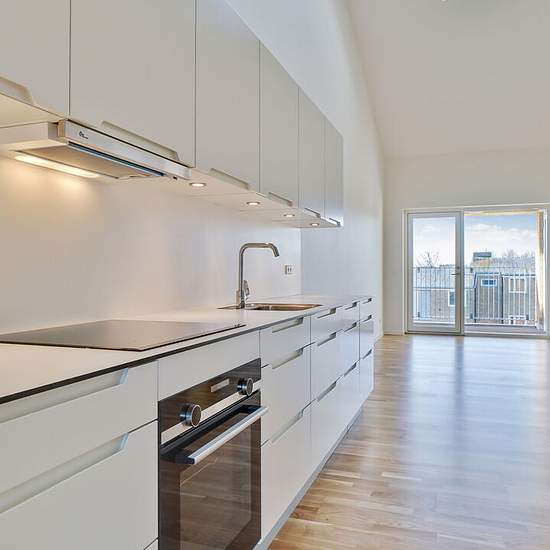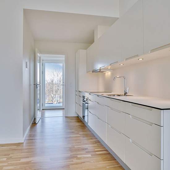 Boligerne er lyse og luftige, med højt til loftet og plads til alle. De har smukke egeparketgulve med gulvvarme, og er perfekte til stilbevidste småbørnsforældre. Her får man det varme look fra træet og samtidigt et praktisk og vedligeholdelsesfrit gulv, hvor syltetøjspletter let kan tørres af med en klud. Alle boliger er indrettet med det kendte og moderne Invita Urban køkken og med armaturer fra Hans Grohe, der er kendt for et klassisk langtidsholdbart design. Her er smukke hvide og enkle flader med rene linjer. Skuffer og låger har Softlu...
