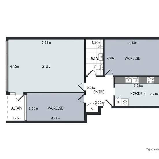 - 3 værelser