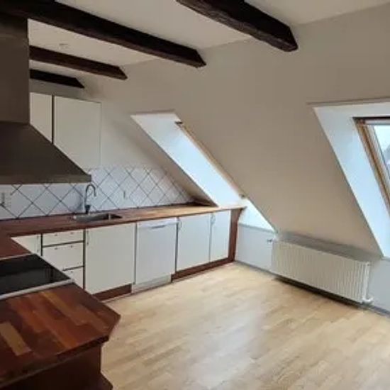 Skøn 3 værelses lejlighed meget centralt i vejle. Der er et fantastisk lys indfald i lejligheden fra velux vinduerne. I hele lejligheden er der synlige bjælker, som skaber en hyggelig stemning. Lejlighed består af køkken med spiseplads og i åbent forbindelse til stuen. Der er to værelser i lejligheden, soveværelse med indbygget skabe og et ekstra værelse. Der er flotte afhøvlet gulve i både opholdsrum og værelser. På badeværelset er der klinker, og plads til opstilling af vaskemaskine. Der vil inden indflytning blive lagt nye gulve og mont...