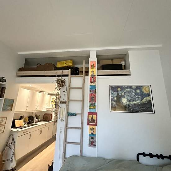 Centralt i Aalborg ligger denne fine 1-vær. lejlighed med eget køkken og bad. Fint køkken med god skabsplads samt 2 kogeplader og kombiovn, lys stue i åben forbindelse til køkken samt lille hems, der kan anvendes som “soveværelse” eller opbevaringsrum. Der er adgang til dejlig fælles tagterrasse og fællesvaskeri, ligesom der er brugsret til fint kælderrum. Fin lille lejlighed, der skal ses. Lejemålet er fra lejers side uopsigelig de første 12 måneder. Husdyrhold tillades ikke. Bofællesskab tillades ikke.