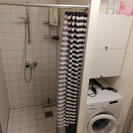 Lejemålet er indrettet med entre, rummeligt badeværelse med plads til vaskesøjle, stor stue og køkken i et, samt et værelse. Vand og varme indbetales aconto. El afregnes direkte til værket.