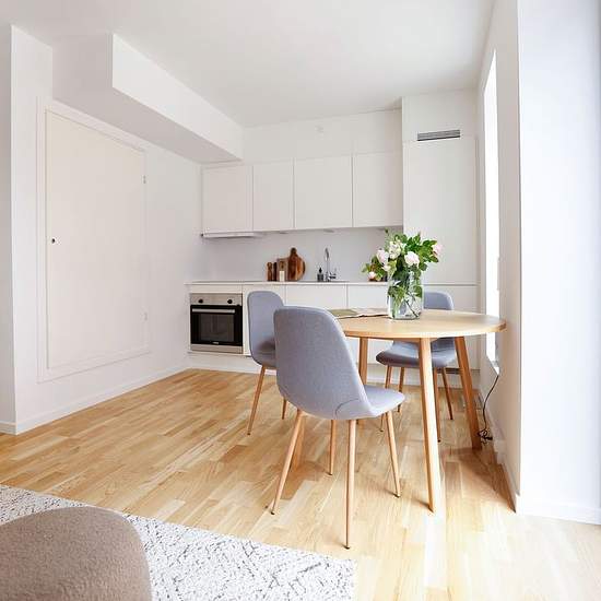 Indretning: Denne skønne og optimerede lejlighed starter med at byde dig velkommen i en entré. Herefter træder du ind i det store åbne køkken-alrum, hvor det smukke hvide Svane køkken, står i god kontrast til de varme egetræsparketgulve med gulvvarme. Køkkenet har alt i hårde hvidevarer, kogeplade, køle-/fryseskab, indbygningsovn og opvaskemaskine. Det store lyse køkken-alrum kan fint indrettes med spiseafdeling i forlængelse af køkkenet samt et hyggeligt stueområde. Fra alrummet har man udgang til en dejlig stor sydvendt altan, hvor udelive...