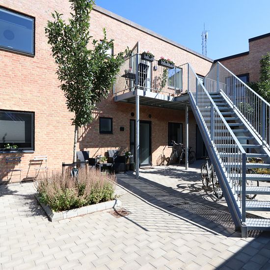 Velkommen til denne flotte og lyse 3-værelses lejlighed, der er en del af et nyopført byggeri i et naturskønt område tæt på både skov og park. Beliggenheden er ideel, kun 10 minutters cykeltur fra Aarhus Universitet. Lejligheden byder på en indbydende entré med flotte klinkegulve og direkte adgang til badeværelse, to værelser, samt et åbent køkken/alrum/stue, hvor lys og luft kombineres på smukkeste vis. Badeværelset er udstyret med et lyst og moderne skabsmiljø og har desuden en praktisk vaske-/tørremaskine installeret. Det stilfulde køk...