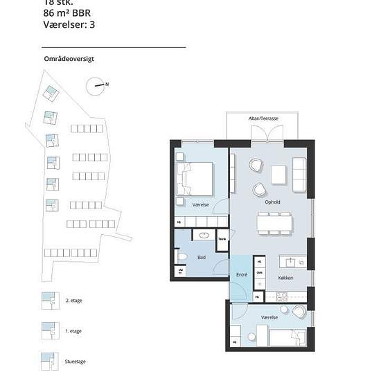 - 3 værelser