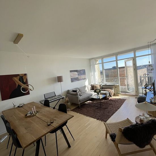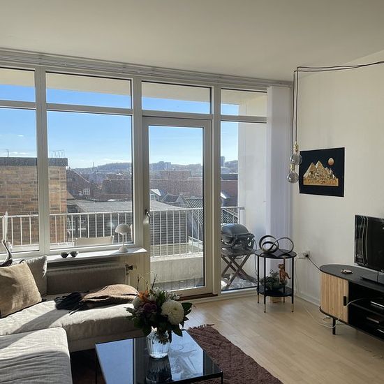 Dejlig 2 værelses lejlighed på 88 kvm. beliggende i Algade til udlejning. Lejligheden ligger på 4. sal, og der er elevator i ejendommen. Stue og soveværelse er rummelige værelser med skabe i det ene værelse. Flot lyst køkken og lyst flisebadeværelse med bruseafsnit. Lejligheden har komfur, emhætte og køleskab. Udgang til mindre altan. Da lejligheden har en fordelingsgang, er den anvendelig som delelejlighed. Adgang til fælles vaskeri - cykelkælder. OMRÅDE: I Aalborg venter en nem hverdag med bekvem adgang til alt, hvad bydelen nu en...
