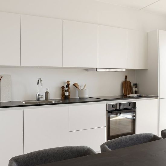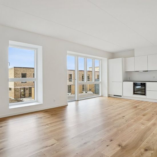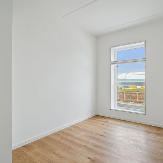Om boligen: Denne skønne og optimerede lejlighed starter med at byde dig velkommen i entré med plads til at hænge overtøjet. Fra entréen har du adgang til en fordelingsgang med adgang til tre af boligens fire værelser, hvor der i alle værelserne er plads til både seng og skrivebord. For enden af fordelingsgangen finder du depotrummet, som med fordel kan bruges til walk-in, hvis dette foretrækkes. Fra gangen har du ydermere adgang til et separat toilet og badeværelse, som er opført i et tidløst lækkert design, rummeligt og med separat bruseni...