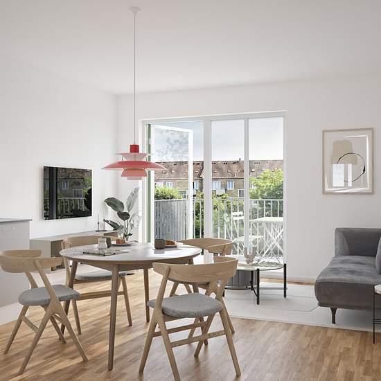 I Drejergården bor du kun 200 meter fra Nørrebro Station, men det, som gør størst indtryk, er den ro, du oplever, når du sidder i gården eller på én af de flere tagterrasser, som er tilknyttet flere af boligerne i ejendommen. Drejergården er et spritnyt byggeri, som elegant kombinerer moderne arkitektur med områdets historiske arv fra sin tid som et industriområde. De store vinduespartier mod gaden er ikke længere facaden på en fabrik, men i stedet panoramavinduer for de 12 imponerende lejligheder i to plan med op til 5 meters loftshøjde. Ej...