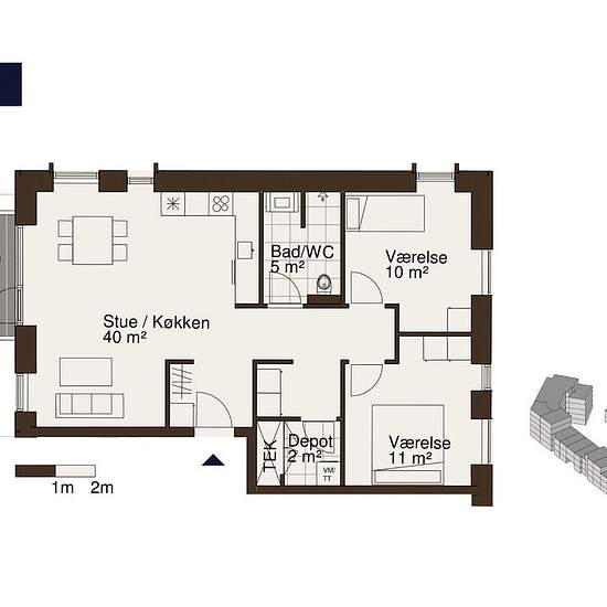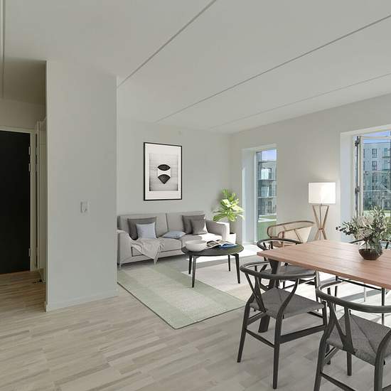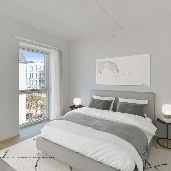 Boligen: Dejlig velindrettet 3-værelses lejlighed med fint lyst køkken-alrum og stue med direkte udgang til store altan. To gode soveværelser og et moderne badeværelse med separat brus. Der er direkte adgang til depotrum i lejligheden. Boligen er lys og her er kun benyttet de bedste materialer. Ydermere er der gulvvarme og genvex som sikrer et godt indeklima. Om Egedal Stationsby: Boligen ligger i en af de flotte arkitekttegnede ejendomme i Egedals nye bydel, tæt på byen og alligevel midt i naturen. Ejendommene er omgivet af dejlige grønne...