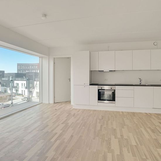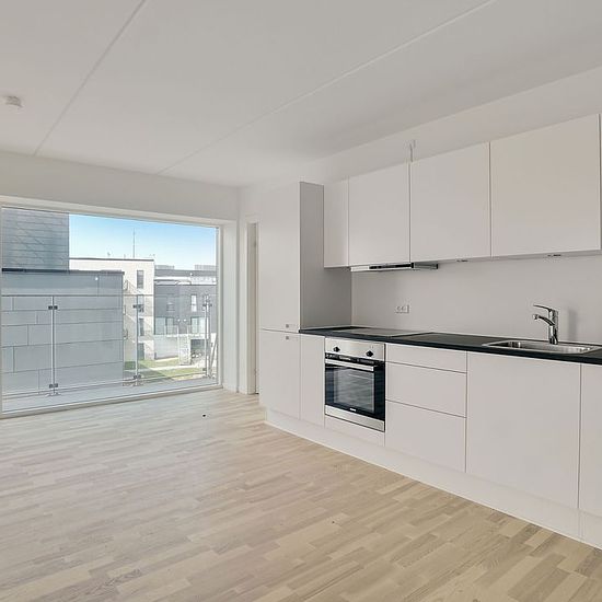 Boligen: Dejlig velindrettet 3-værelses lejlighed med fint lyst køkken-alrum og stue med direkte udgang til store terrasse. To gode soveværelser og et moderne badeværelse med separat brus. Der er direkte adgang til depotrum i lejligheden. Boligen er lys og her er kun benyttet de bedste materialer. Ydermere er der gulvvarme og genvex som sikrer et godt indeklima. Om Egedal Stationsby: Boligen ligger i en af de flotte arkitekttegnede ejendomme i Egedals nye bydel, tæt på byen og alligevel midt i naturen. Ejendommene er omgivet af dejlige grønn...