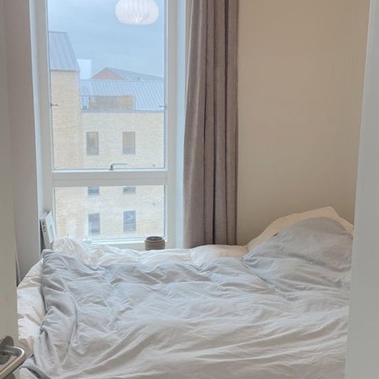 Bliv lejer af denne ekstraordinære 4-værelses penthouse lejlighed på 97 veldisponerede kvadratmeter. Lejligheden er beliggende i det nyopførte Fjordpynten, i Nørresyndbys nye bydel, Stigsborg. Her får du en beliggenhed helt i top, med udsigt over fjorden, den grønne park og byen. Lejligheden er indrettet med en fin entré, hvor du har adgang til lejemålets badeværelse, der står i lyse kvalitetsmaterialer og med vaskesøjle. Træder du videre ind i lejligheden, mødes du af det store og lyse køkken-alrum, hvor lyset strømmer ind gennem de store v...