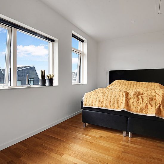 Velkommen indenfor i dette 4-værelses rækkehuse i Høiriisparken i Brabrand. Rækkehuset er omkranset af skøn natur med Årslev skov i baghaven. Både Brabrandstien og Brabrand Sø er ligeledes inden for gåafstand. På Brabrandstien kan man cykle til Aarhus centrum på 25 minutter, omgivet af vand det meste af turen. Hvis vejret ikke er prangende, så kan bilen også bruges og fragte dig til Aarhus centrum på 10 min. Dette rækkehus rummer 4 værelser fordelt på 2 etager. På stueetagen finder du entréen, et toilet, køkkenalrum/stue udstyret med et sto...
