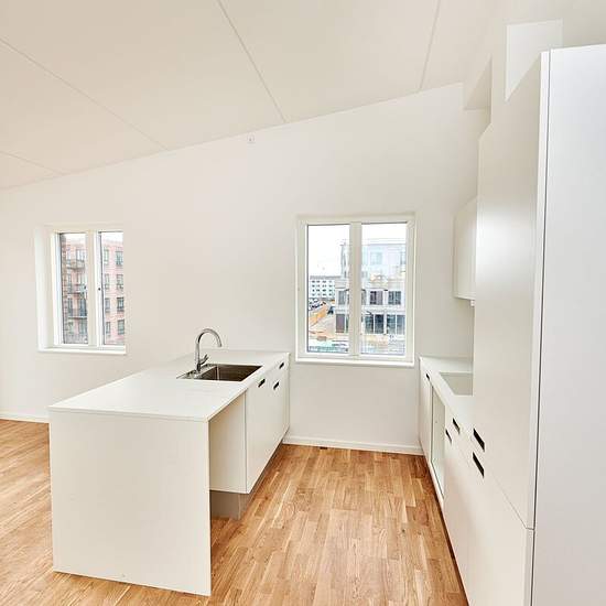 Velkommen til Lindehuset – en moderne boligejendom med 62 smukke lejeboliger i den nye bydel Parkkvarteret i hjertet af Ballerup. Her får du en bolig designet til at imødekomme hverdagens behov. De 62 lejligheder er fordelt på 2, 3 og 4 værelser og har alle en privat terrasse eller altan. På 3. sal tv. finder du en skøn 2-værelses lejlighed. Fra entréen træder du ind i køkkenet, hvor der er direkte udgang til boligens egen altan – et dejligt sted at nyde udelivet. Derudover rummer lejligheden et opholdsrum, som er oplagt at indrette som stue...