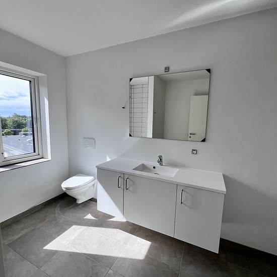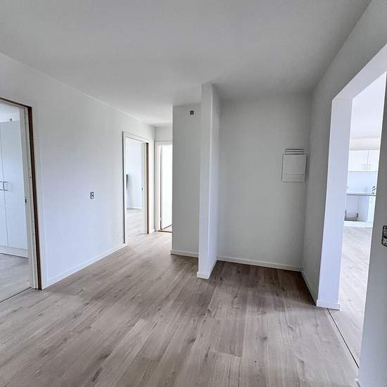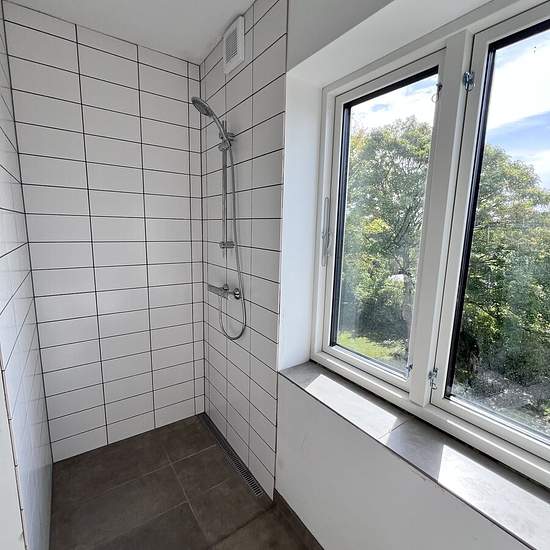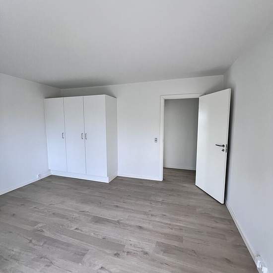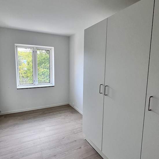 Denne 4 værelses lejlighed er indrettet på følgende måde: Indgang fra mellemgangen, hvorfra man træder ind i en entré med faste skabe. Til højre er der indgang til et stort værelse på 15 m2 med 2 faste skabe og et lidt mindre på 12 m2. Fra gangen er der også indgang til bad/toilet hvor der er klargjort til vaskemaskine/tørretumbler. Videre fra gangen er der indgang til et stort og lækkert køkken/alrum, hvorfra der er adgang til den 5 m2 store altan. Mod øst ligger soveværelset på 16 m2, her er der også faste skabe, og en lille altan. Køkkene...