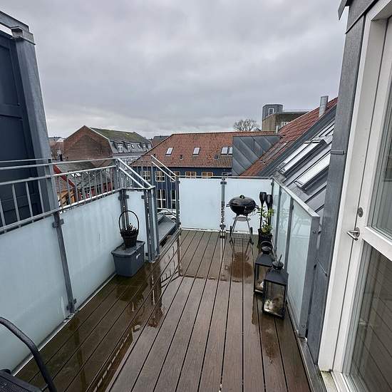 Nu udlejes denne nyere og ekstremt hyggelige taglejlighed beliggende i Koldings absolutte centrum. Lejligheden er komplet nyetableret, hvorfor gulv, køkken, bad, hvidevarer, vinduer, døre mm. alt er nyt og moderne . Fra hoveddøren entreer du lejlighedens fine køkken-alrum, hvor der er god plads til spisebord, stue og andet. Køkkenet er et tidløst grebsfrit HTH-køkken, som kommer med alt i hårde hvidevarer . Lejlighedens soveværelse er rummeligt og entreres fra lejlighedens køkkenalrum/stue. Lejlighedens badeværelse er et klinkebadeværels...