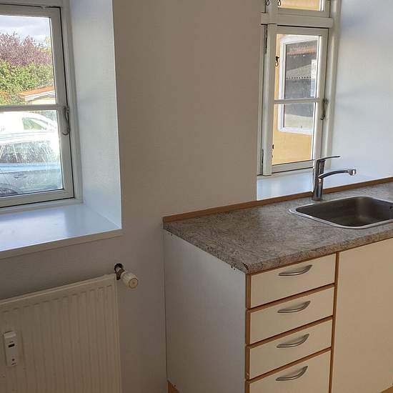 Velindrettet og hyggelig 2-værelses stuelejlighed centralt beliggende i Skælskør. Lejemålet er beliggende i flot ejendom med gode fælles faciliteter og indeholder følgende: Lys møblerbar entre, stue mod gade, soveværelse mod gård, pænt nyere køkken og badeværelse med plads til egen vaskemaskine. Til lejemålet medfølger egen garage. Et lejemål der skal ses - udlejes nyistandsat. A conto forbrug indeholder: varme & vand. Bemærk venligst, at du bedes oplyse dit telefonnummer ved henvendelse på annoncen.