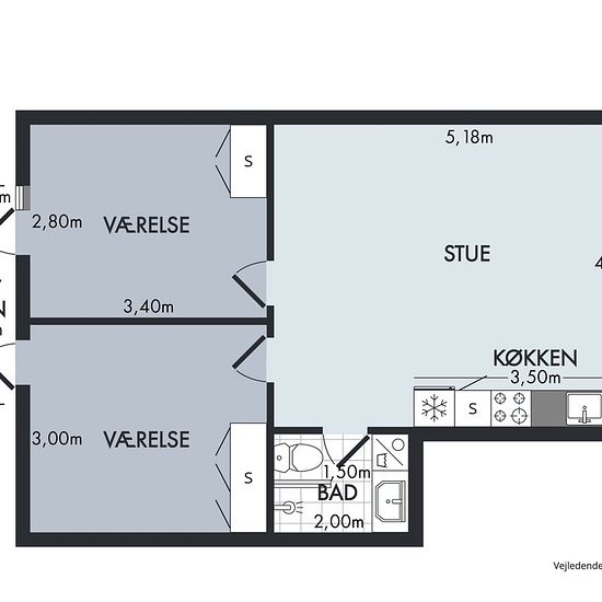 - 3 værelser