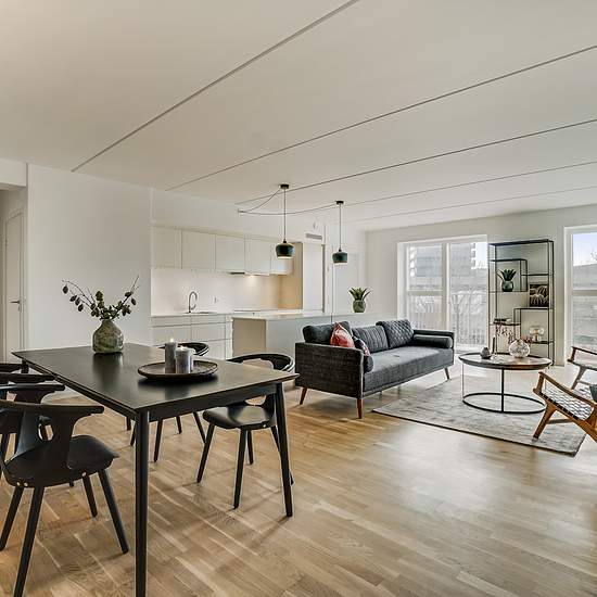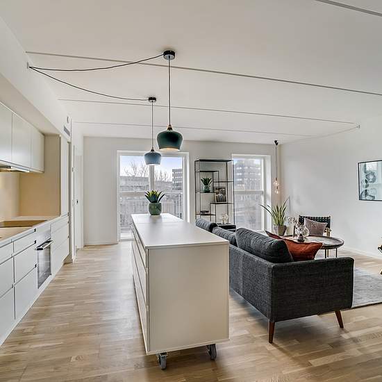OBS!! Billederne er ikke fra det aktuelle lejemål, men skal blot give et indtryk af stilen. Plantegningen er fra boligen. Denne skønne 4-værelses lejlighed er fordelt på 3 soveværelser, 2 badeværelser og et stort indbydende køkken alrum, der fungerer som lejlighedens naturlige samlingspunkt. Lejligheden er naturligt gennemlyst af velplacerede vinduer, som bidrager til oplevelsen af et lyst og behageligt hjem. Køkkenet er rummeligt og fungerer som lejlighedens naturlige samlingspunkt. Køkkenet er udført i lyse Invita-elementer i et flot og...