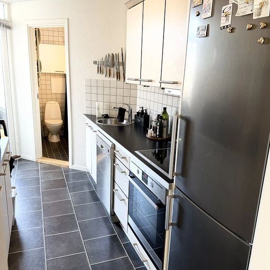 2-værelses lejlighed – Vendelbogade Denne hyggelige 2-værelses lejlighed er beliggende i Vendelbogade, kun 5 minutters gang fra Nytorv. Lejligheden indeholder: Stor og lys stue med gode indretningsmuligheder Soveværelse med stort tøjskab og vindue mod gården Køkken med komfur, emhætte og køle/fryseskab og opvaskemaskine Udgang til skøn vestvendt altan fra køkkenet Flot badeværelse med gulvvarme, vindue m.m Gulve: Nylakerede gulve i stue, soveværelse og fordelingsgang Linoleumsgulv i køkken Lejligheden overtages nymalet ...