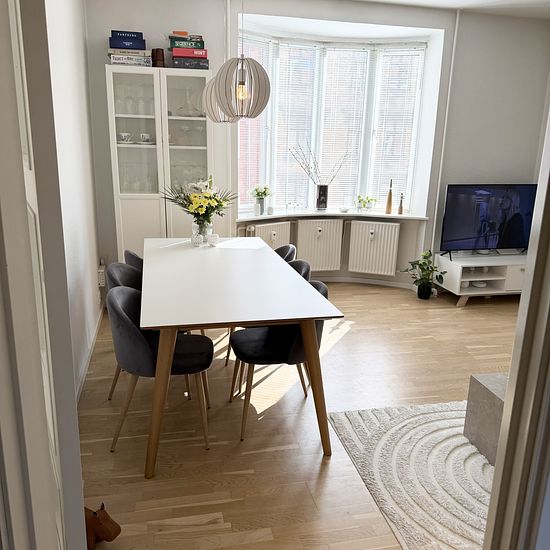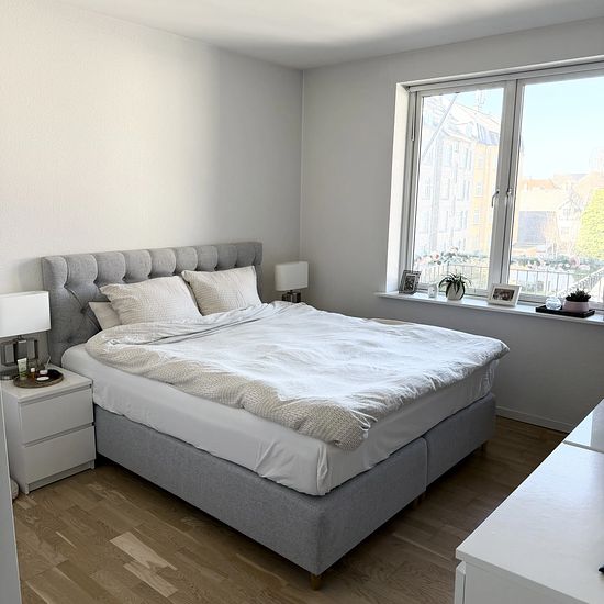 2-værelses lejlighed – Vendelbogade Denne hyggelige 2-værelses lejlighed er beliggende i Vendelbogade, kun 5 minutters gang fra Nytorv. Lejligheden indeholder: Stor og lys stue med gode indretningsmuligheder Soveværelse med stort tøjskab og vindue mod gården Køkken med komfur, emhætte og køle/fryseskab og opvaskemaskine Udgang til skøn vestvendt altan fra køkkenet Flot badeværelse med gulvvarme, vindue m.m Gulve: Nylakerede gulve i stue, soveværelse og fordelingsgang Linoleumsgulv i køkken Lejligheden overtages nymalet ...