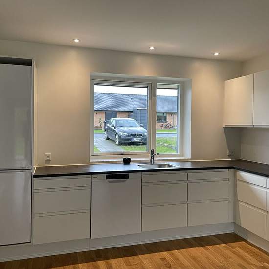 Nyere rækkehus fra 2022 i Taulov. Rækkehuset indeholder entré med indbygget et teknikskab, hvor der også er plads til vaskemaskine og tørretumbler. Derudover består huset af, et stort flot badeværelse, stort køkken/alrum med vinduesparti samt direkte adgang ud til egen lukket have, 2 gode værelser med indbygningsskabe. Lejemålet har udover baghaven også en mindre forhave, hvor der er et skur og indkørsel med plads til parkering af én bil. Mod husdyrskontrakt er det tilladt at holde husdyr i lejemålet. Forbrug afregnes direkte med v...