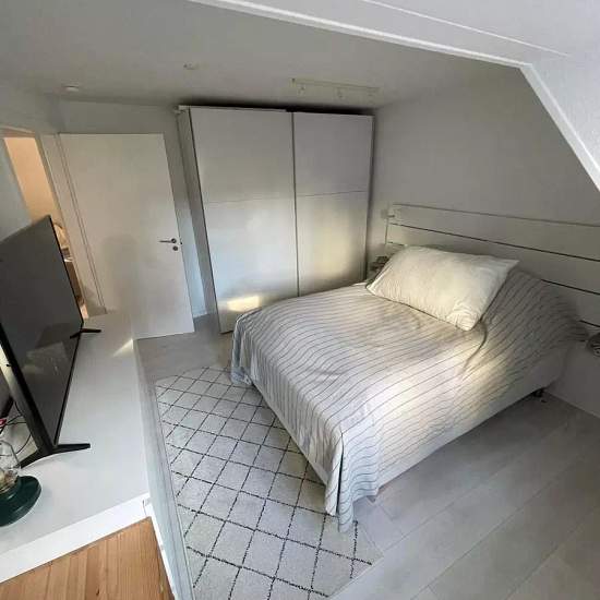 Dejlig lys og hyggelig lejlighed midt i byen, uden støj fra gaden. Lejligheden er beliggende centralt i Reberbanegade med masser af muligheder for shopping i det centrale Aalborg. Reberbansgade er kendt for sine mange mad-steder, hvor du finder alt fra pizza, sandwich, sushi, wok og pasta takeaway. Under 1km. så står du i det centrale Aalborg med masser af shopping og indkøbsmuligheder. Tætteste indkøbsmuligheder er hhv. Netto, Aldi og Føtex. Der er ikke langt til Aalborg flotte havnefront, som indbyder til gå og løbeture.