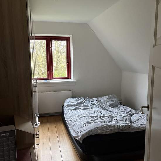 Stort 5 værelses fritliggende hus med egen have indeholdende entre, køkken, stor stue, soveværelse, bryggers med træpille fyr, badeværelse. 1. sal med 2 værelser, stor repos/arbejdsplads. Vaskekælder, carport. Huslejen er eksklusiv forbrugsudgifter som betales dirkete til forsyningsværker.