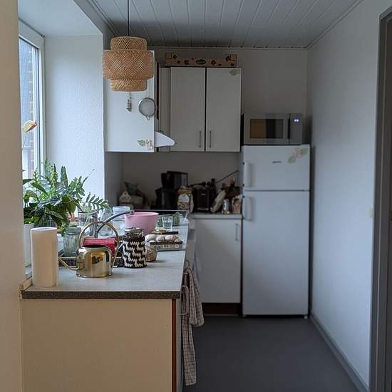 Pæn og regulær to værelses, godt køkken og badeværelse, midt i byen med have Vand og el er fast incl. i huslejen.