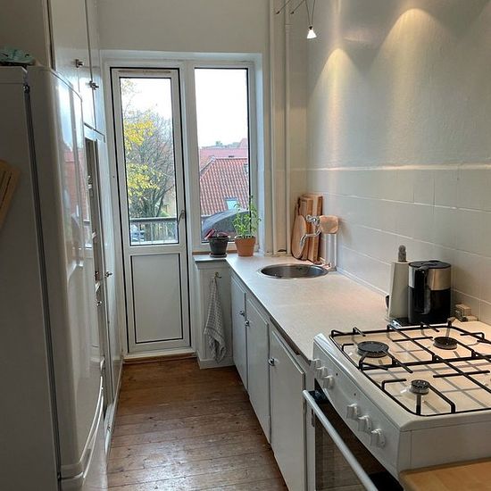 Fin 1-værelses lejlighed beliggende på Borgmestervænget i 9000 Aalborg. Lejemålet, som er placeret i enden af en stille gade i centrum af Aalborg, har en fantastisk udsigt over såvel by som grønne områder. Når du træder ud af ejendommen er du tæt på alt, hvad Aalborg har at tilbyde. Her er du tæt på indkøbsmuligheder, forskellige kulturoplevelser, studieliv og offentlig transport. Lejligheden består af et værelse/stue, et hyggeligt køkken og et fint badeværelse. Lejligheden har 2 skønne altaner. Lejligheden overtages som beset.